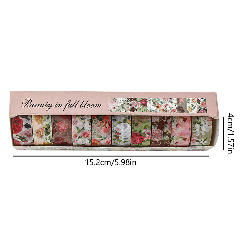 10 Rolos Encaixotados Diversos Beleza Em Série Full Bloom Fitas Adesivas Literárias Scrapbook Deco DIY Washi Fita Adesiv