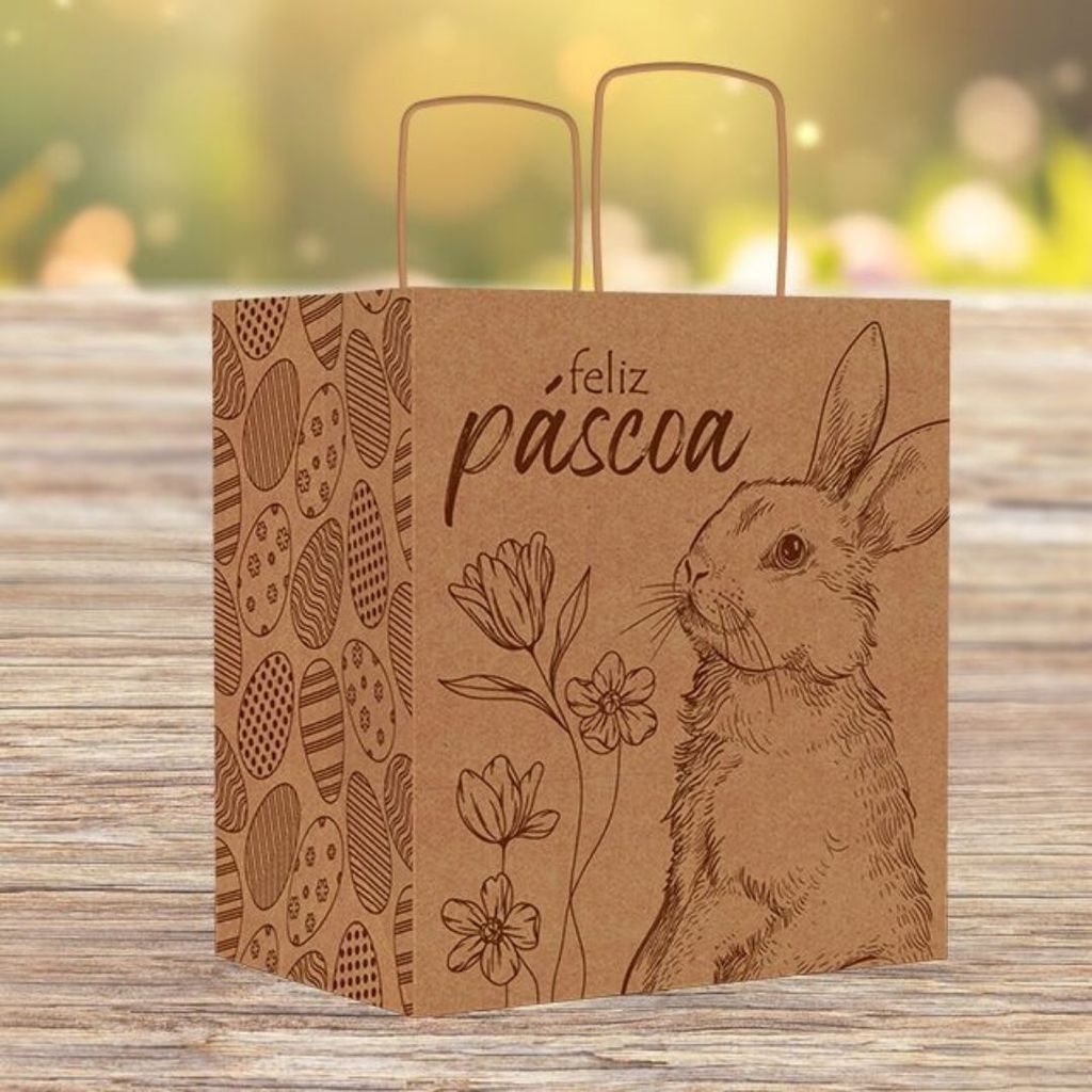 A Sacola Eco M da linha Páscoa Encantos é versátil e resistente. Seu acabamento kraft natural oferece um toque artesanal e elegante para diferentes tipos de presentes. Medidas cm (CxLxA) 22x15x24 Material Papel Kraft e Tinta Sugestões de uso Ideal para kits de Páscoa, doces, mini vinhos ou produtos artesanais. Diferenciais Alça trançada; Papel kraft; Design neutro e moderno.