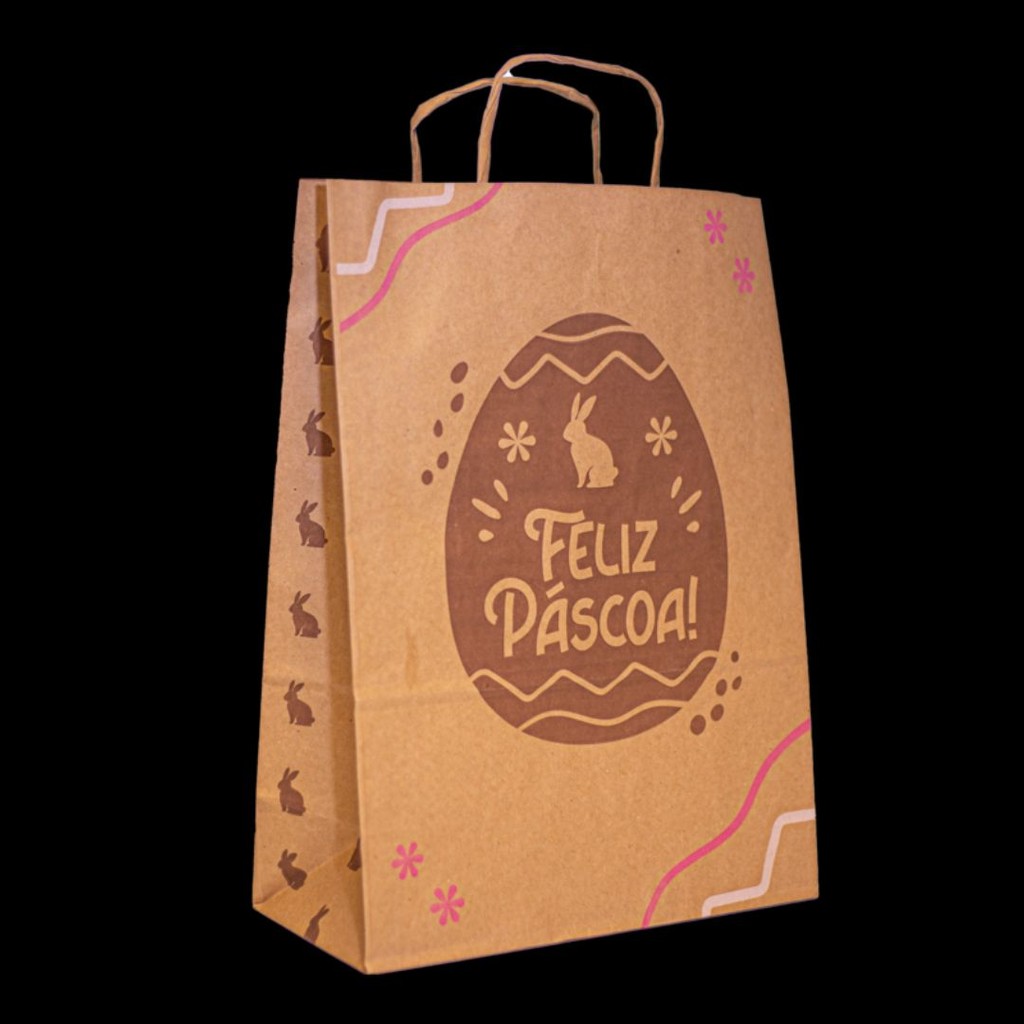 SACOLAS ECO PÁSCOA FELIZ SÃO EMBALAGENS SUSTENTÁVEIS E ALEGRES, IDEAL PARA EMBALAR OVOS DE PÁSCOA, DOCES E OUTROS MIMOS. FEITAS DE MATERIAL ECOLOGICAMENTE CORRETO, ELAS SÃO RESISTENTES, RECICLÁVEIS E AMIGÁVEIS AO MEIO AMBIENTE. COM UM DESIGN FESTIVO E A MENSAGEM "PÁSCOA FELIZ", ESSAS SACOLAS ADICIONAM UM TOQUE DE ALEGRIA E ENCANTO À CELEBRAÇÃO. PERFEITAS PARA PRESENTEAR COM RESPONSABILIDADE AMBIENTAL, COMBINAM PRACTICIDADE E ESTILO PARA UMA PÁSCOA AINDA MAIS ESPECIAL. MEDIDAS: 24X15X22 CM ATENÇÃO: - NÃO ACOMPANHA CHOCOLATES