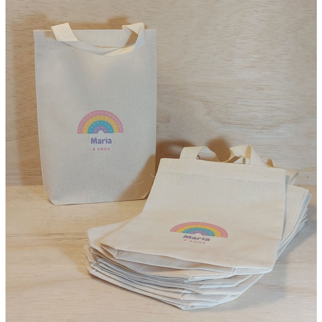 PACOTE 10 OU MAIS UNIDADES: SACOLINHA MINIBAG ARCO ÍRIS BOHO - VINHO E LARANJA - PERSONALIZADA - ESTAMPA PADRÃO - ALGODÃO CRU - LEMBRANCINHA DE ANIVERSÁRIO CÓDIGO DO PRODUTO: 20230414_130533 ATENÇÃO: -- Produto personalizado. Leia as condições comerciais. -- Faça seu pedido com pelo menos 30 dias de antecedência. SACOLINHA - ESTAMPA PERSONALIZADA -- Sacolinha em algodão cru com estampa personalizada. -- Tamanhos: ---- Sacolinha Minibag 15x16cm - Fundo 5cm - Estampa Padrão 40cm² ---- Sacolinha Minibag 15x20cm - Fundo 5cm - Estampa Padrão 45cm² ---- Sacola 20x25cm - Fundo 6cm - Estampa Padrão 80cm² ---- Sacola 25x30cm - Fundo 8cm - Estampa Padrão 120cm² -- Alça de algodão natural. -- Tamanho da alça: 20cm de comprimento por 15mm de largura. -- Estampa em película transfer transparente, aplicada termicamente. -- Envie sua ideia, logo ou arte para o transfer. -- Serviço de produção de arte não incluso. POLÍTICAS DA LOJA HORÁRIO DE ATENDIMENTO -- Segunda à Sexta, das 8:00 às 18:00h. -- Fora desse horário, deixe sua mensagem, que responderemos assim que abrirmos o ateliê. ARTES SEM CUSTO ADICIONAL -- Artes pré-definidas com adaptações simples (mudança de nome, data e letras). -- Arte enviadas pela/o cliente, prontas para uso, com resolução adequada e sem necessitar tratamento, desde que seja uma arte única a ser aplicada a todas as peças. ARTE COM CUSTO ADICIONAL (DEPENDENTE DA COMPLEXIDADE DO TRABALHO) -- Inserção de nomes, palavras ou artes individualmente diferentes em cada peça, mesmo quando enviadas prontas. -- Tratamento de imagens. -- Montagem a partir de elementos enviados ou ideias. -- Dependendo da simplicidade do pedido, podemos isentar o custo de arte, a critério exclusivo do ateliê. PRAZOS -- Nosso prazo é definido pela demanda, temos uma fila de produção por ordem de chegada. -- Pedidos urgentes serão avaliados caso a caso de acordo com nossas possibilidades de atendimento, desde que não atrasem os demais. -- Não iniciamos a execução de um pedido de imediato, respeitando rigorosamente a ordem da fila. -- O prazo de postagem é aquele indicado, observando os dias úteis e não dias corridos, conforme expresso nos anúncios. -- Não nos responsabilizamos pelo cumprimento de prazos de transporte dos correios e transportadoras. VARIAÇÕES -- É responsabilidade da/o cliente verificar se o tamanho do produto é adequado ao uso que vai fazer dele. -- Por se tratar de produtos feitos a mão, pequenas variações de tamanho, tonalidade e alinhamento podem eventualmente ocorrer. -- Qualquer desacordo com o esperado, pedimos que entre em contato para resolvermos da melhor maneira possível. -- Não há garantia de disponibilidade de todos os tecidos anunciados, pois isso depende do mercado e das coleções dos fabricantes.
