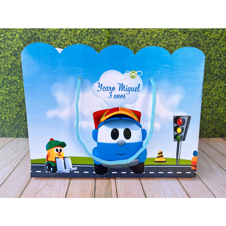 10 Sacolinhas Léo e o Caminhão Personalizadas Com Nome e Idade Para Festas