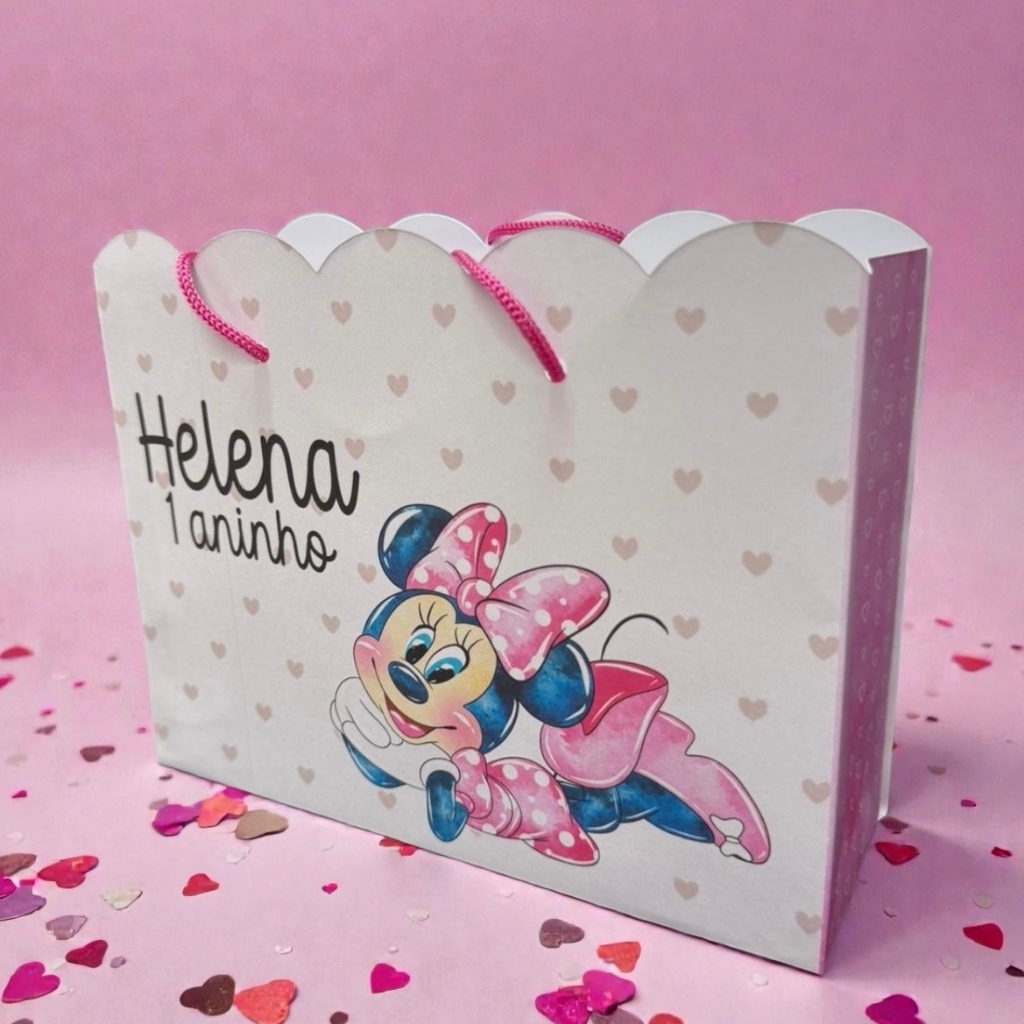 10 Sacolinhas Minnie Rosa Personalizadas – Lembrancinha Festa Infantil G (20x16x6)