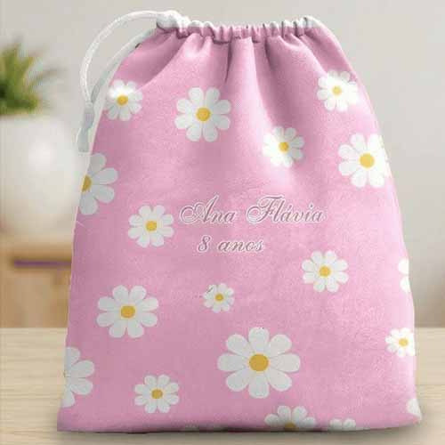 10 sacolinhas personalizada tecido MARGARIDAS ROSA para lembrancinhas de festa de aniversario 30cmx20cm Estampa Digital de alta definição de cores estampa somente na frente Sacolinha de tecido personalizada Sacolinha no tema MARGARIDAS ROSA para lembrancinhas de festa de aniversario 30cmx20cm com tecido microfibra 100 % poliéster. Sacolinha com sublimação somente na parte da frente. Verso com tecido liso na cor branca. Sacolinha acompanha cordão para fechamento. A arte é impressa em alta qualidade diretamente no produto, podendo lavar e passar. Obs.: Por se tratar de um produto artesanal, com todo o processo de corte, montagem e finalização feitos à mão, as medidas finais de cada item poderão apresentar pequena variação de 1 a 2 cm. -ASSIM QUE EFETUAR A COMPRA, NO CHAT ENCAMINHE O NOME DO ANIVERSARIANTE E IDADE !! (por exemplo: "Gael, 2 anos"). Obs.: Não será apresentada amostra para aprovação. A estampa será a mesma da imagem deste produto. OS PRODUTOS QUE MOSTRAMOS NA SACOLINHA NÃO ESTAO INCLUSOS. SÃO SO PARA DEMONSTRAR O QUE VOCE PODE COLOCAR DENTRO