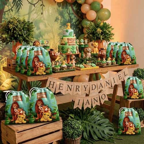 10 sacolinhas personalizada tecido REI LEÃO para lembrancinhas de festa de aniversario 30cmx20cm