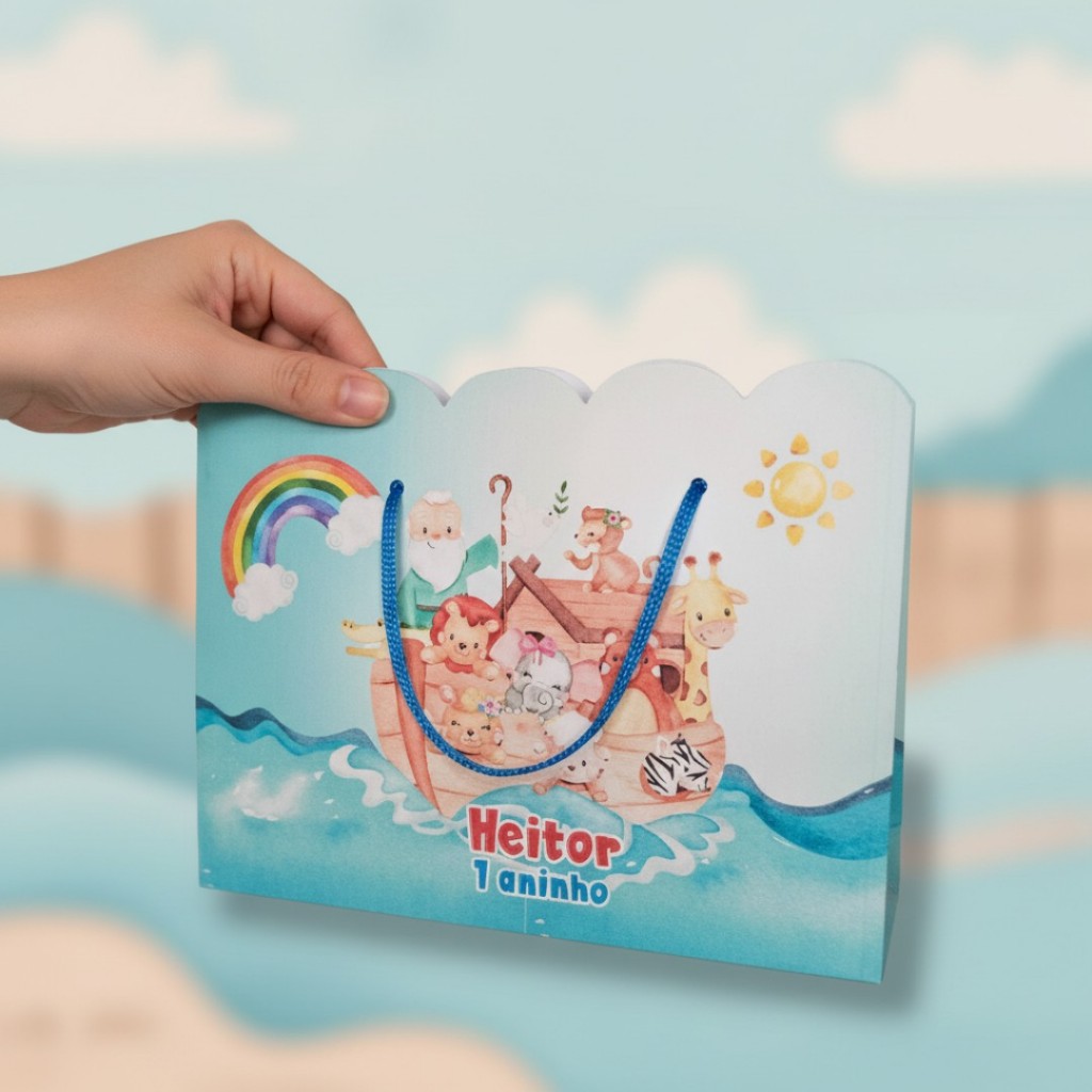 10 Sacolinhas Personalizadas Festa Arca de Noé (20x15x5cm)