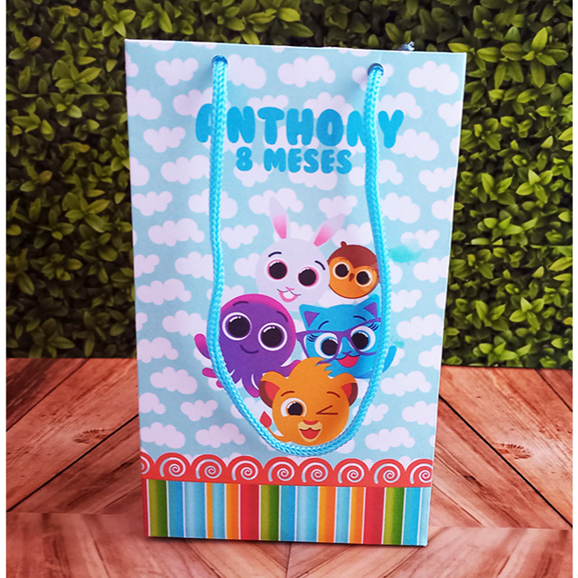 10 Sacolinhas Personalizadas Festa Bolofofo Azul Personalizado Com Nome e Idade Bolofofos