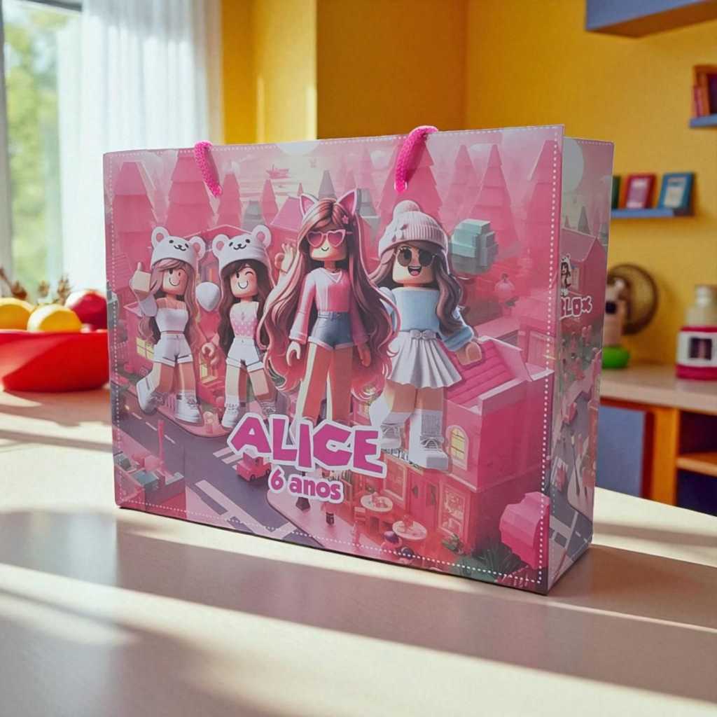 10 Sacolinhas Personalizadas Festa (G) Roblox Rosa (20x16x6cm)
