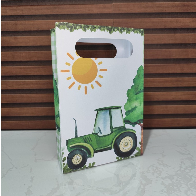10 Sacolinhas TRATOR VERDE - Sacolas para lembrancinha de aniversário infantil - Pegue e Monte