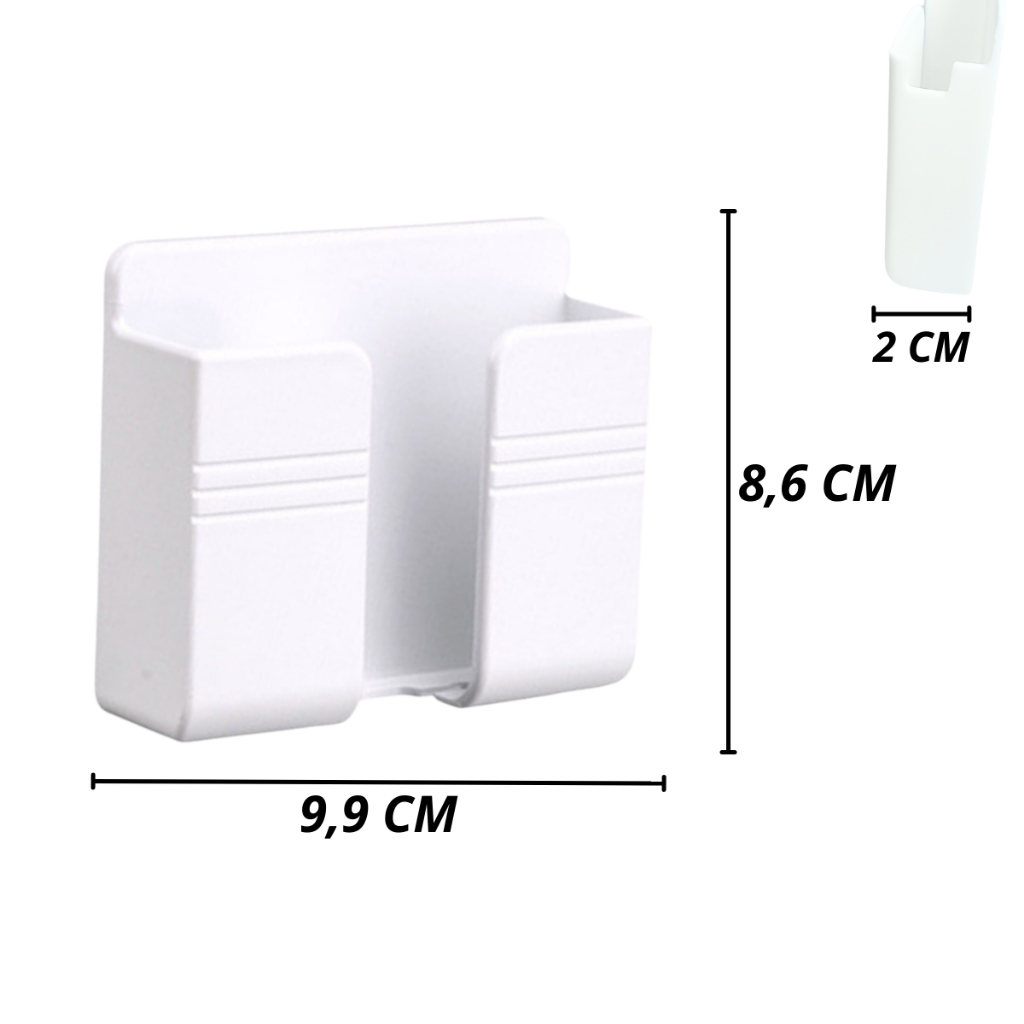 Suporte Apoio Para Celular Universal De Parede Com Adesivo Chega de ficar colocando seu celular para carregador pendurado a tomada, jogado no chão, em cima do sofá e cama, com risco de cair e se quebrar, chegou na Shoplin Diniz, o porta celular de parede!! Você instala ele ao lado da tomada e acomoda seu aparelho de forma segura. É bem prático, você não precisa furar a parede, possuí ela possui adesivos alto colante de alta qualidade, é só colar!!! CARACTERÍSTICAS PRINCIPAIS: - Cuidados: Evite colocar itens muito pesados no suporte, ideal para superfície lisas, evite colar em paredes com textura, tinta ou papel de parede) MODO DE APLICAÇÃO: - Remova a sujeira, umidade e pó da superfície - Retire o papel de proteção localizado na parte da trás e fixe o prendedor no local desejado - Pressione bem firme por alguns segundos e aguarde 24 horas antes de utilizá-lo após esse período utilize o produto com itens resistente e pesados antes de utiliza-los com celular ou itens frágeis para garantir a fixação do produto CARACTERÍSTICAS TÉCNICAS: - Peso: 50g - Dimensões aproximadas: 8,5x10x2,5cm - Material: Plástico ITENS INCLUSOS: - 10 Suporte para celular Branco - 10 Adesivo do suporte Produto a pronta entrega. Atenção, não cole os adesivos sobre paredes sujas, e não ultrapasse o peso indicado no anúncio.
