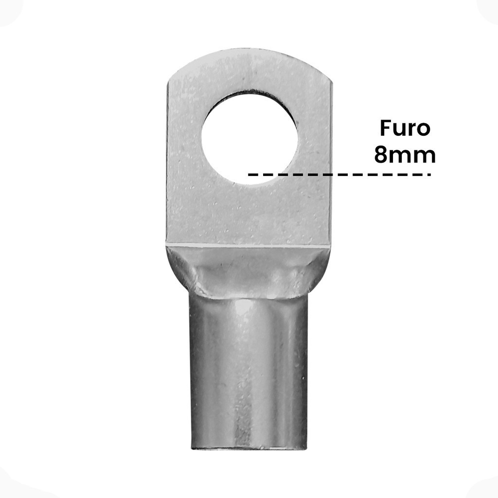 10 Terminal Olhal Compressão Cobre Estanhado p/ Cabo Elétrico 16mm² Furo 8 M8