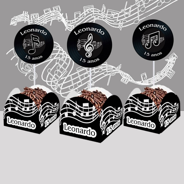 10 Topper mais 10 Forminhas Para Docinho Notas Musicais Plaquinha Personalizada para Docinhos Palitinho em Acrílico Aniversário