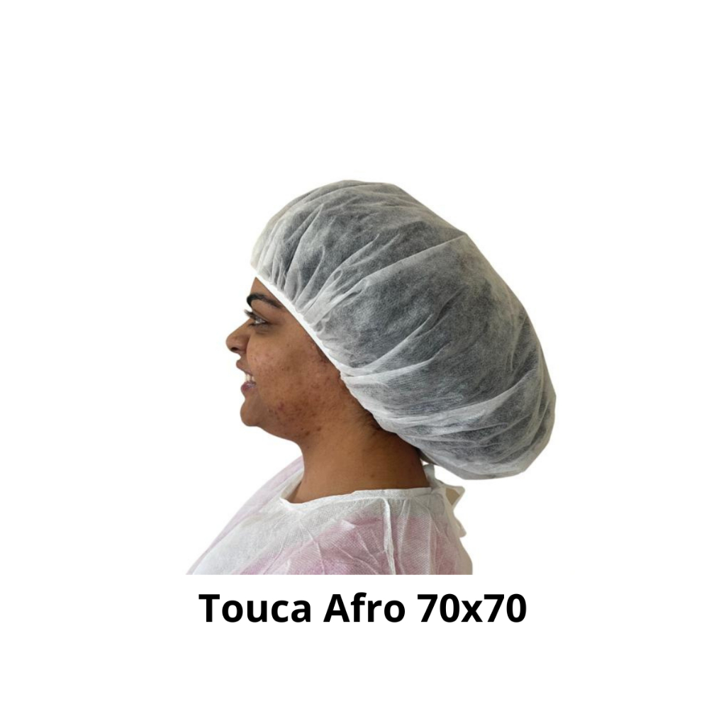 Touca Afro Confeccionada em 100% polipropileno com elástico em toda sua extensão. TAMANHO: 0,60 x 0,60 - 0,70 x 0,70 -0,80 x 0,80 NCM: 63079010 MARCA: DEJAMARO NOTIFICAÇÃO ANVISA: 81605660031 PACOTE COM: 10 UNIDADES