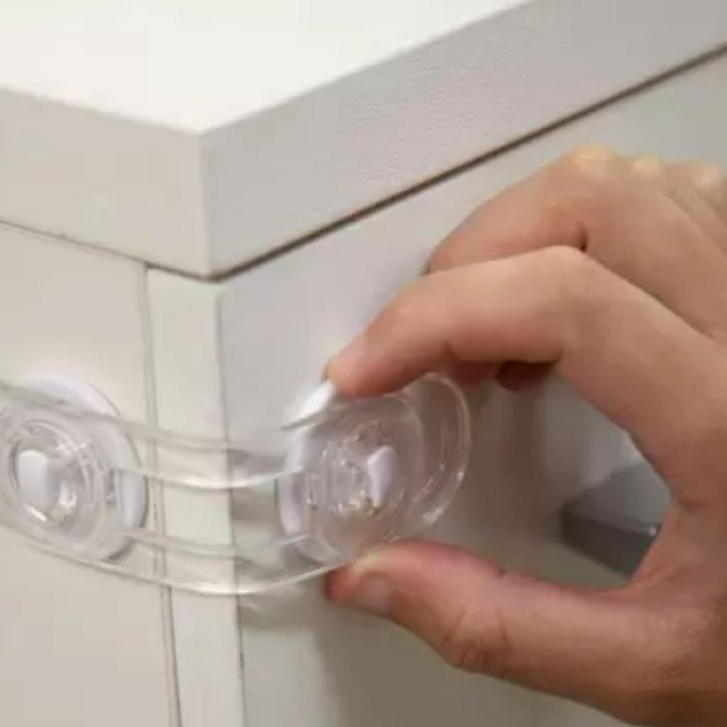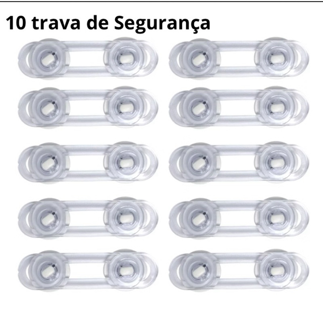 Trava para Segurança Contém 10 unidades Material: *haste (PVC); *Trava de PE de alto impacto; *Dupla Face de EVA Super colante; *Dimensões 11cm x 3cm . A TRAVA DE SEGURANÇA, é eficaz e simples de ser instalada. Evitando que crianças abram portas, geladeiras e gavetas. Evitando acidentes. Instalação: A TRAVA DE SEGURANÇA vem com um adesivo em vermelho, que deve ser retirado, expondo a parte que irá grudar no móvel escolhido. Cole as duas partes, fazendo com que o móvel não abra. Para abrir, basta retirar o corpo de silicone da parte que está presa no móvel, os dois lados podem ser retirados. Obrigado pela visita e boas compras!!