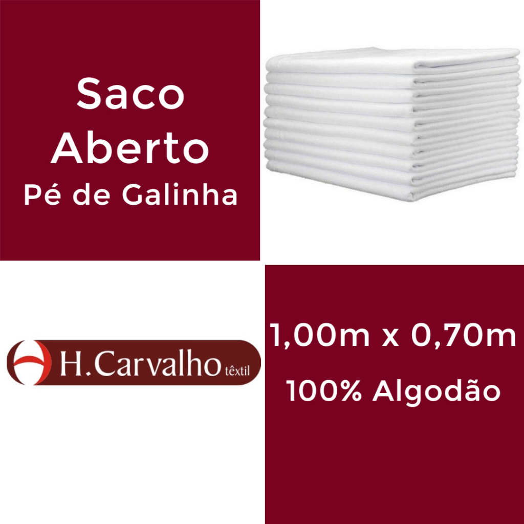Mais um produto disponibilizado a você pela Sacaria Claus! Kit contendo 10 Sacos Abertos Pé de Galinha Liso Sem Costura e sem Estampa, medindo 1,00m X 70cm cada pano com composição de 100% Algodão. O Saco Aberto Pé de Galinha é referência no mercado de panos, fabricados por empresa tradicional, a Têxtil H Carvalho. São panos encorpados, propiciando excelente absorção (enxugam muito bem!), facilidade na lavagem (são brancos, facilitando o dia-a-dia na hora da lavagem), podendo ser lavados com utilização de alvejante, além do sabão, para deixá-lo pronto para ser utilizado novamente. Esse pano é ideal para quem irá fazer seu trabalho artesanal (Pano com Bordado, Aplicação, Faixa Ponto Cruz, Patchwork, etc.) e deseja que o pano seja de ótima qualidade com o melhor acabamento (o Seu!), valorizando o trabalho executado. Também pode ser utilizado em Residências, Hotéis, Motéis, Restaurantes, Buffet Infantil e Adulto, e todo tipo de empresa que precisa de um pano grande com excelente absorção e qualidade, além de ótimo custo/benefício. Informações Importantes: - O pano é liso sem bainha; - Não possui costura; - Sua trama característica propicia excelente absorção; - O Produto é fabricado com fibras naturais, o que pode fazer com que apresentem variação de tonalidade; - Lotes fabricados em datas diferentes podem apresentar variação de tonalidade; - Em alguns casos, podem apresentar pequenos orifícios e suas bordas menores. Não é defeito do pano e, sim, parte do processo de fabricação do pano, necessário para que o pano apresente as suas ranhuras características. Características adicionais: Modelo: Kit 10 un Saco Aberto Pé de Galinha Original Tamanho: 1,00m x 70cm Composição: 100% Algodão Gramatura: 140g/m² Marca: Têxtil H Carvalho Seu pedido será coletado pela Shopee em até 2 dias úteis após a confirmação da compra. Pode confiar! A Sacaria Claus tem 20 anos de presença e experiência no comércio atacadista e varejista! Em caso dúvidas, estamos à disposição para esclarecê-las! Boas compras!