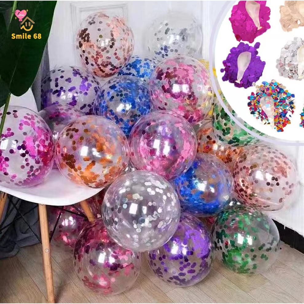 10 Unid Balão Cristal Transparente 9 Polegados + Confete 15g 10 mm Para Festas