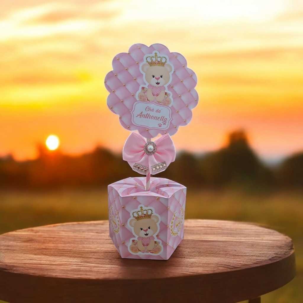 10 Unidades Centro de mesa Festa Chá Ursinha Rosa