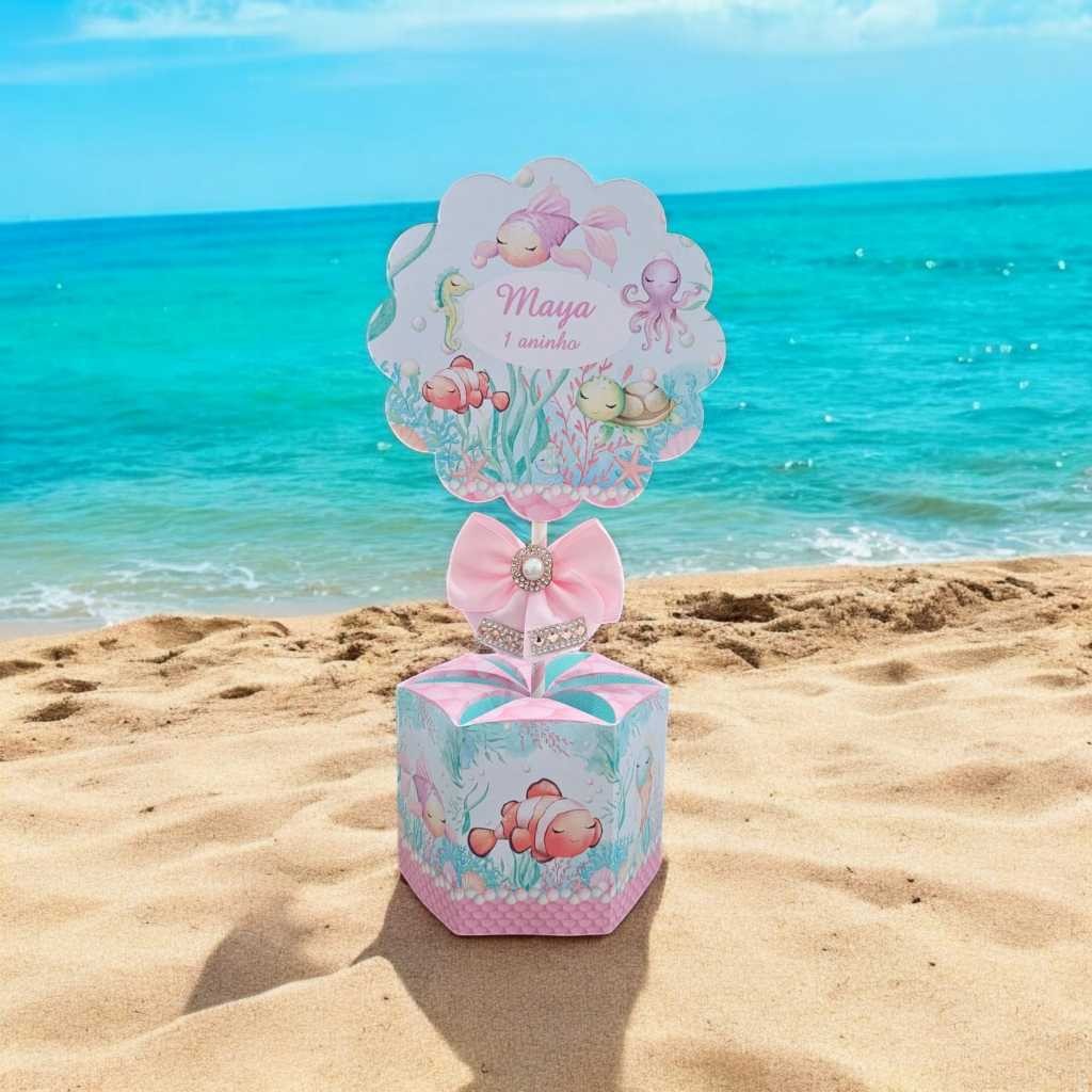 10 Unidades Centro de mesa Festa Fundo do Mar Menina