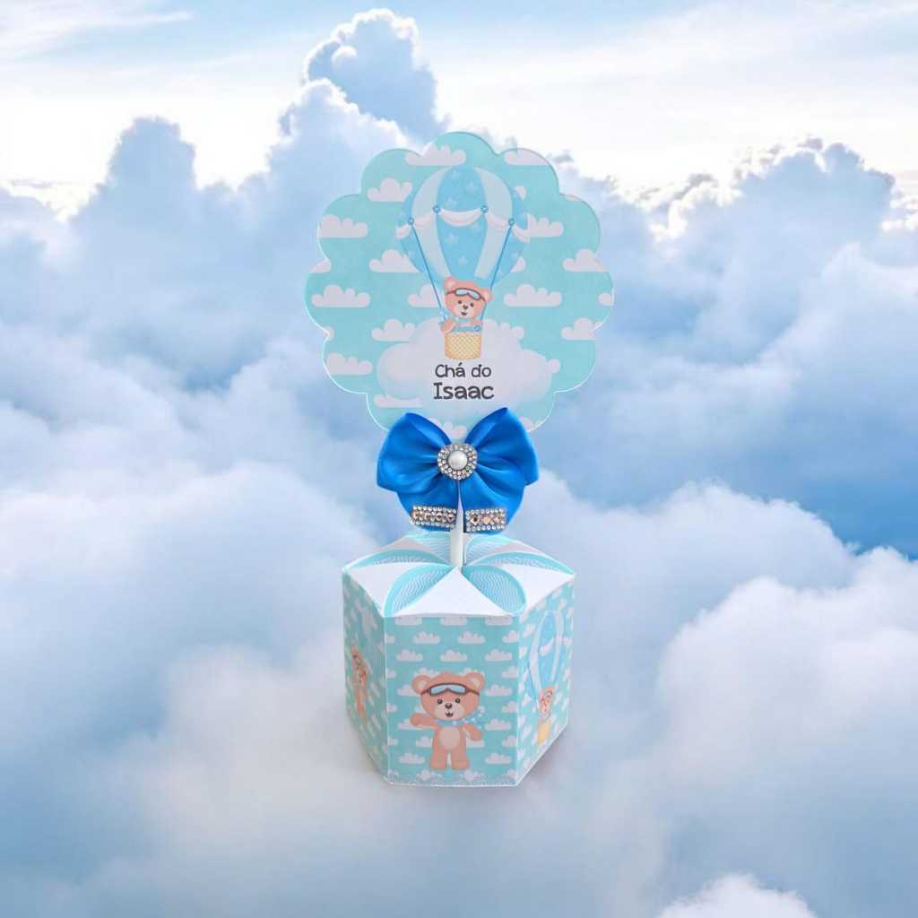 10 Unidades Centro de mesa Festa Infantil Ursinho Baloeiro Azul