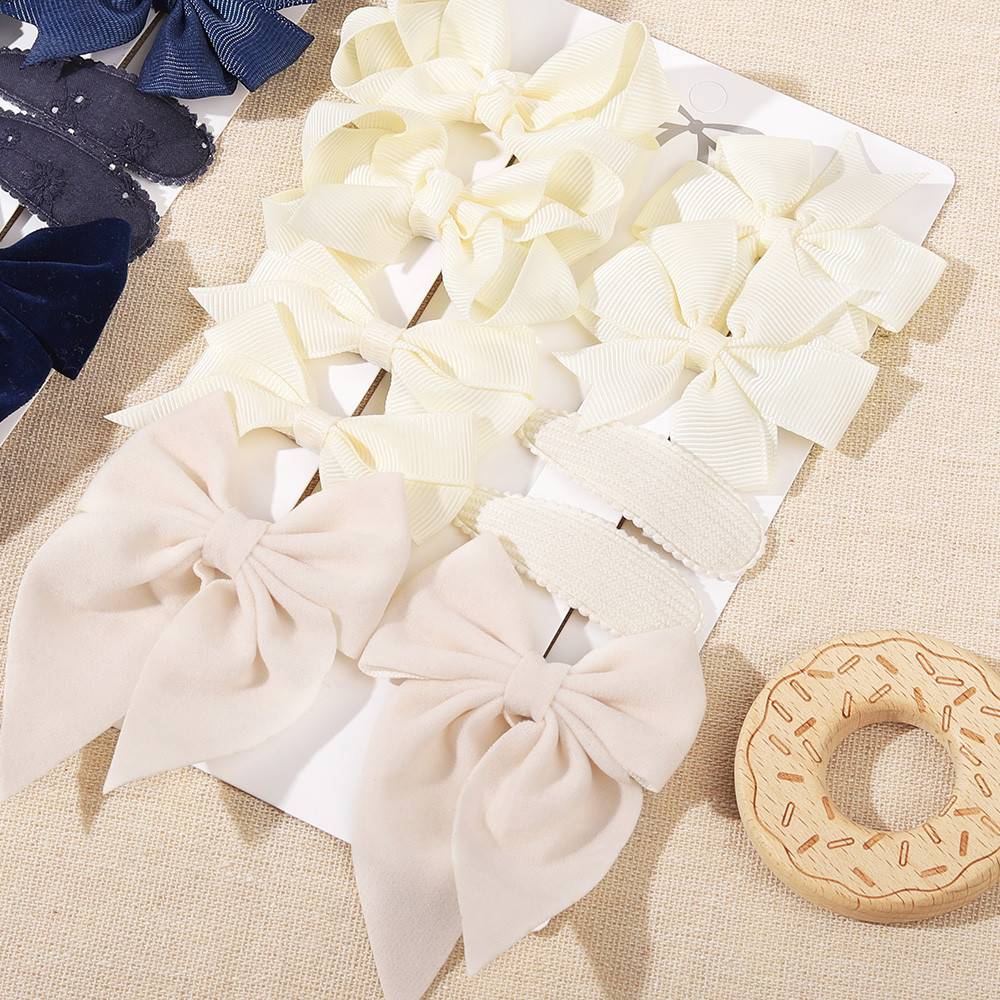 10 Unidades/Conjunto De Acessórios De Cabelo Com Laço Infantil , Apresentando Grampos De Cetim Azul Marinho E Marrom Vel