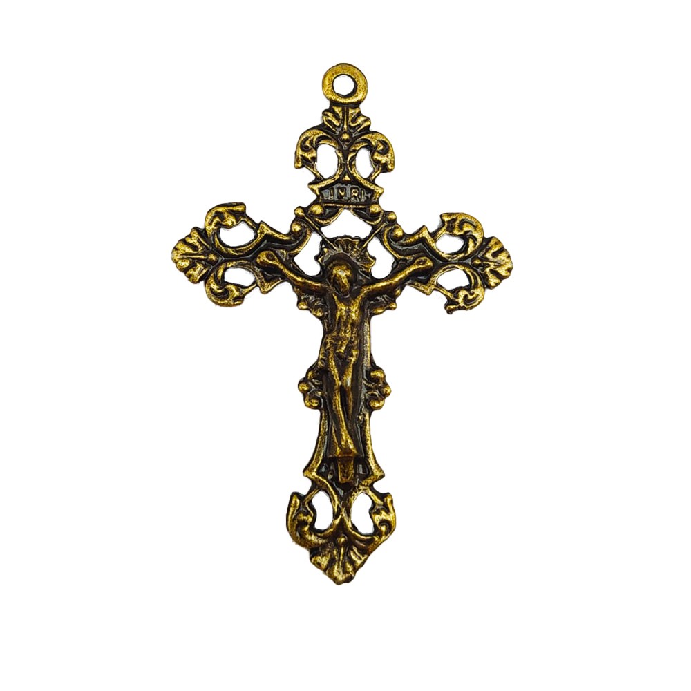10 Unidades Crucifixos Italiano e 10 Unidades Entremeios Resinados Em Ouro Velho Para Fazer Terço