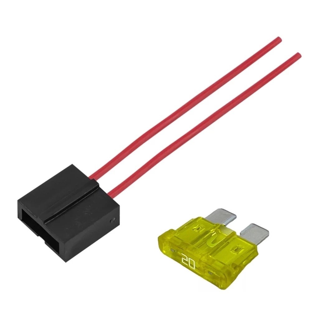 10 x Porta Fusível com cabo de 2,5mm² e Fusível de lamina 20APorta fusível com fio de 15 cm de comprimento e bitola de 2,5mm². ESPECIFICAÇÕES TÉCNICAS: Altura:8 mm Largura: 21 mm Comprimento com o fio: 15 cm Espessura do Fio: 2,5mm FUSÍVEL LÂMINA 20 AMPERES MÉDIO PACOTE C/ 10 UNIDADES ESPECIFICAÇÕES TÉCNICAS: Amperagem: 20 Amperes Altura: 1,8 cm Largura: 2,0 cm Espessura: 0,6 cm Quantidade: 10 Unidades CONTEÚDO DA EMBALAGEM: 10 Fusível Lâmina 20 Amperes 10 Porta Fusível Lâmina fio 2,5mm