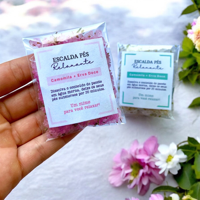100/200/300 escalda pés para lembrancinha camomila e erva doce mimo aniversário cliente rosa branco azul amarelo natal
