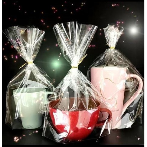 100/50 saquinho poli para canecas xicaras copos twists balde de pipoca saco plástico transparente pp tipo celofane