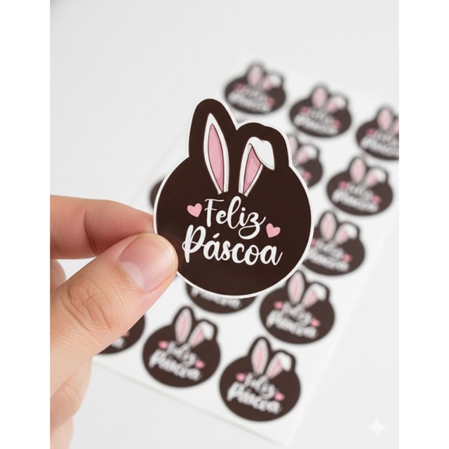 100 Adesivos Páscoa Orelha Coelho Etiquetas P/ Ovos De Colher Doces 40x50mm Vinil Brilho Impermeável Recorte Especial