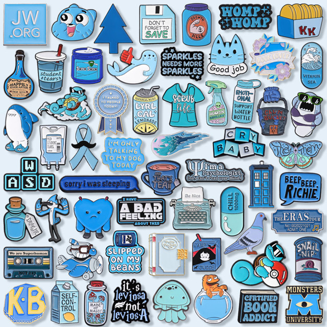 100 Azul Venda Quente Esmalte Broche Dos Desenhos Animados Texto Animação Animal Metal Pino Criativo Bonito Mochila Aces
