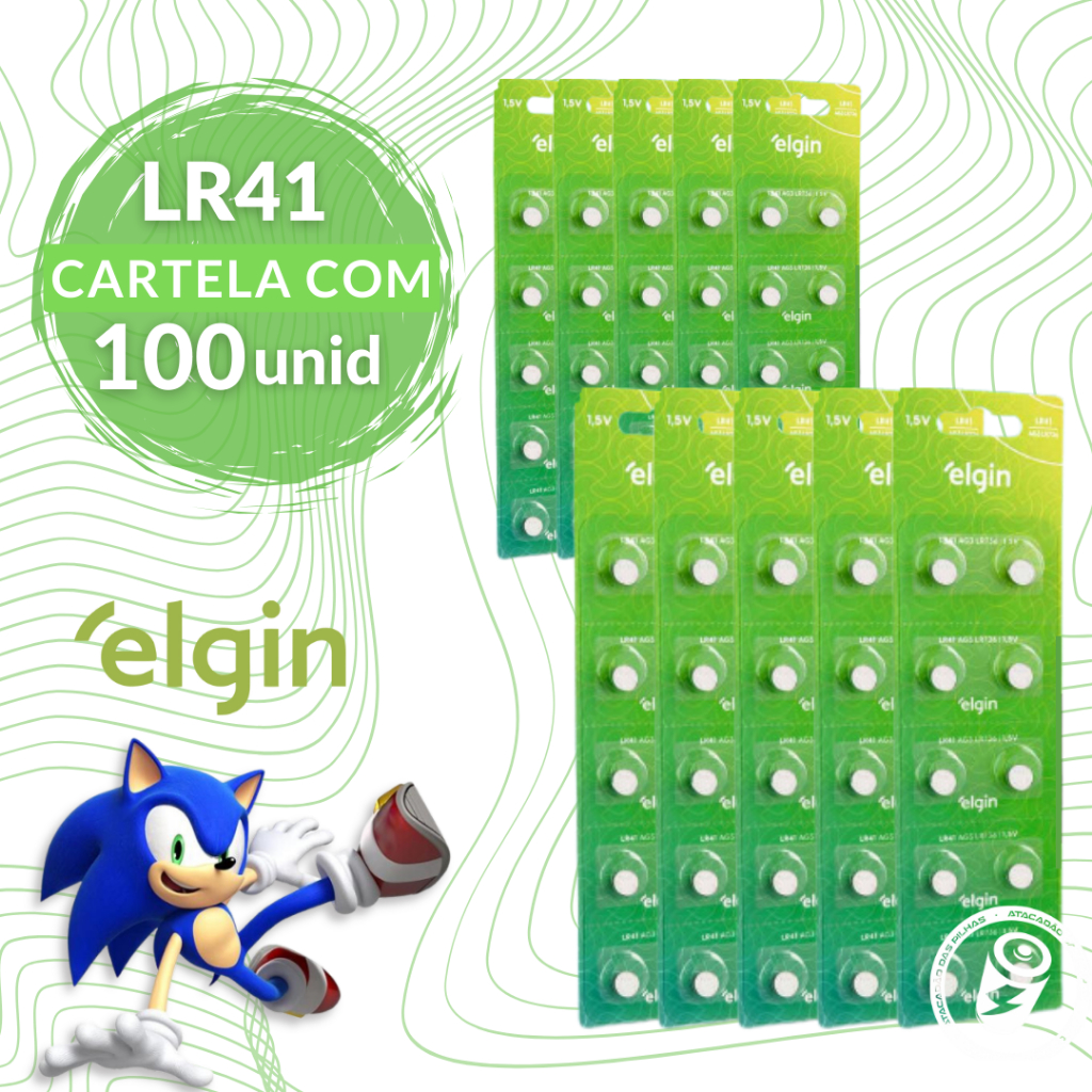 100 Baterias Alcalina Lr41 Elgin Botão 10 Cartelas C/10 Uni