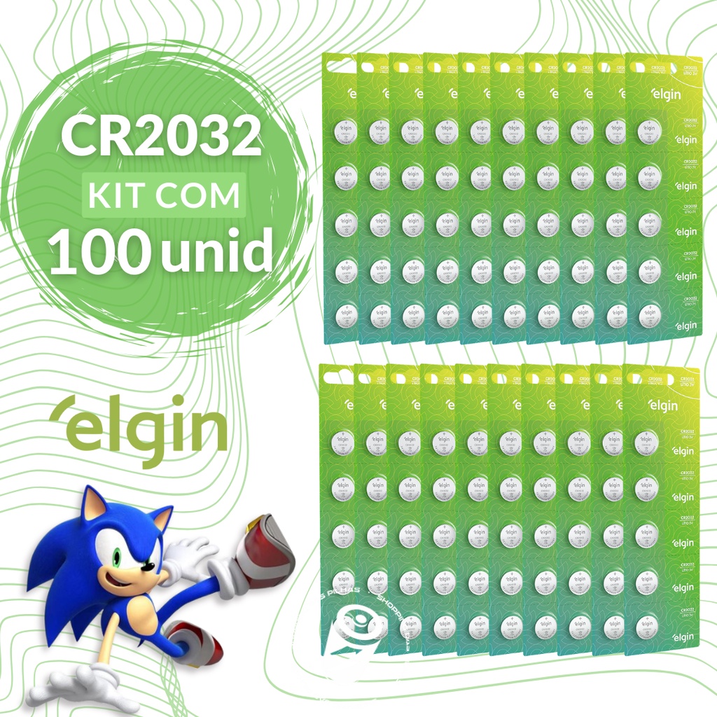 100 Baterias CR2032 3V Tipo Moeda Litio Lithium Elgin Energy - 20 Cartelas C/ 05 Unidades