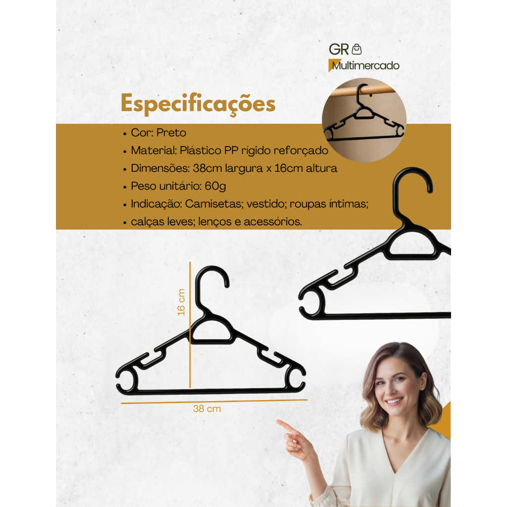 100 Cabides Para Roupas Preto Premium Plastico Adulto Para Reforçado Organizar Roupas ATACADO