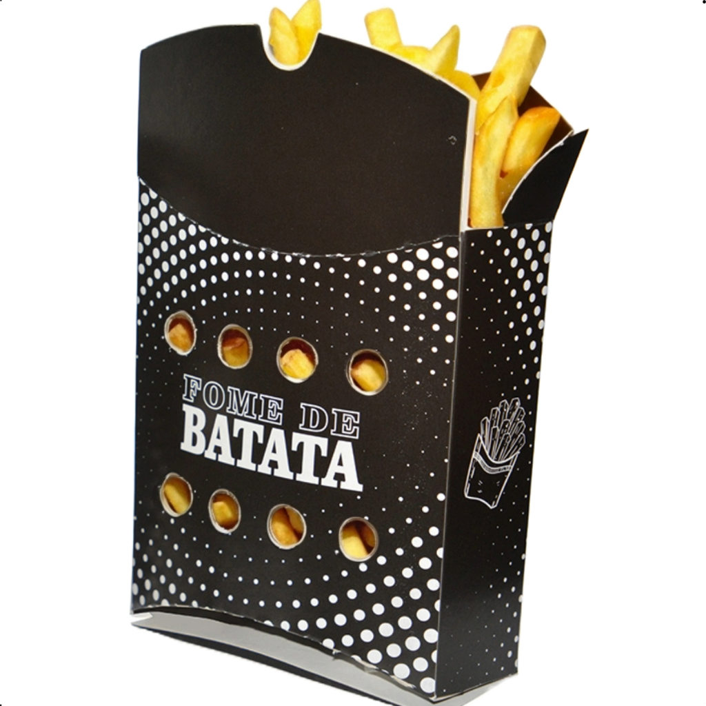 100 Caixa Embalagem Batata Frita Delivery Porção Salgados M Média Preto Viagem Perpacks Embalagens