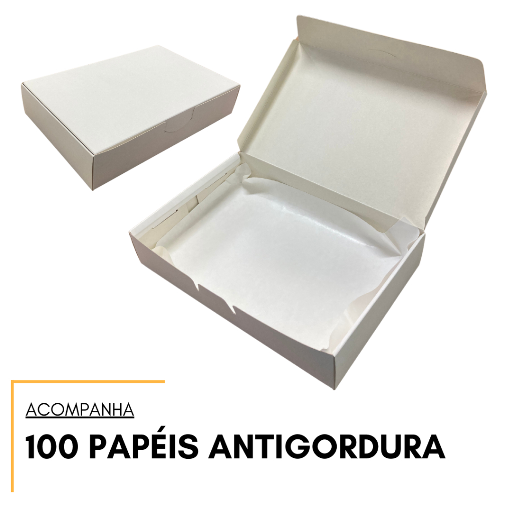 100 Caixa Para Salgados Porções Batata Frita Delivery + Antigordura - REF04 - Branca 25x17x5cm