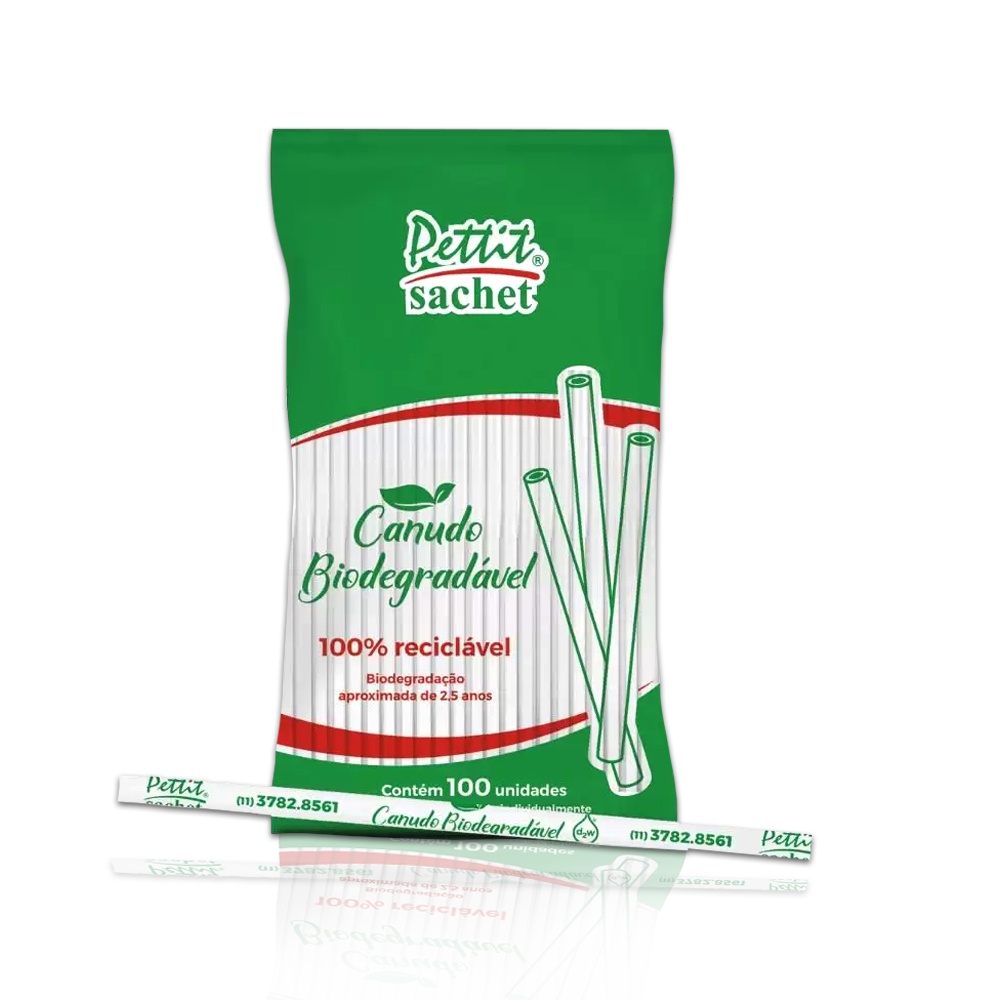 100 Canudos Biodegradável De Plástico Liso Transparente Embalado Reciclável Para Drinks Petit Sachet