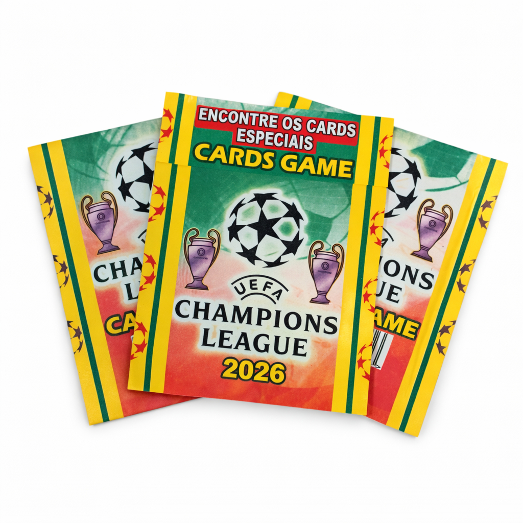 100 cards Champions League PD 2026 = 25 pacotes fechados