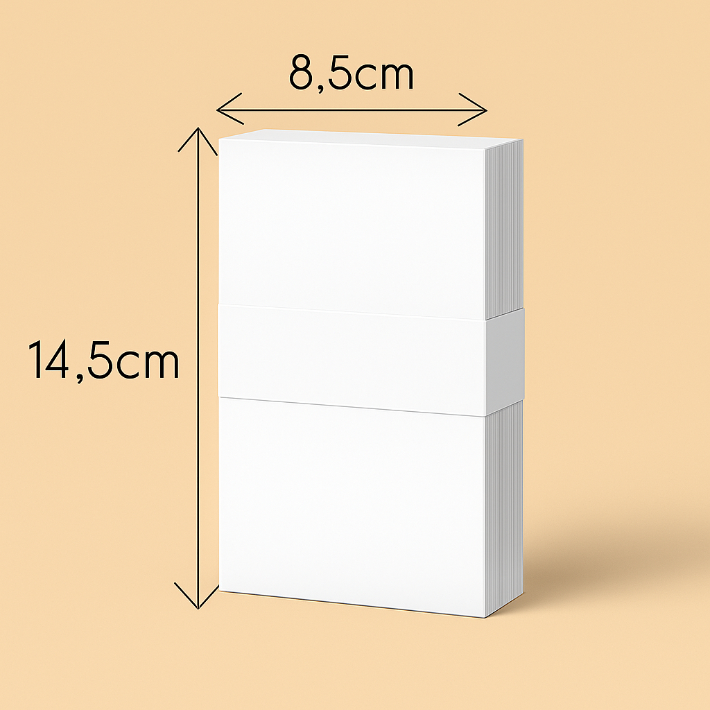 🎀 Cartelas para a melhor exposição do seus acessórios HairClips: ✔️Tamanho: 6cm x 10,5cm ✔️ Frente branca (realce do produto) e verso pardo ou claro Papeleta: ✔️ Tamanho: 8 x14,5 cm ✔️ Papel Duplex 300g – firme e resistente ✔️ Frente branca (realce do produto) e verso pardo ou claro ✨ Destaques: Ideal para laços, faixinhas, tiaras e turbantes Embalagem e suporte profissional para suas peças Material reforçado que não dobra facilmente Deixa seu produto mais valorizado em lojas, feiras e vendas online