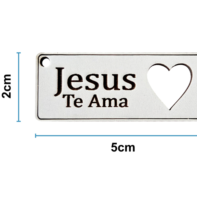 100 Chaveiros Jesus te Ama com Coração Vazado em Mdf Branco Lembrancinha Religiosa Fé Igreja confraternizaçao seia