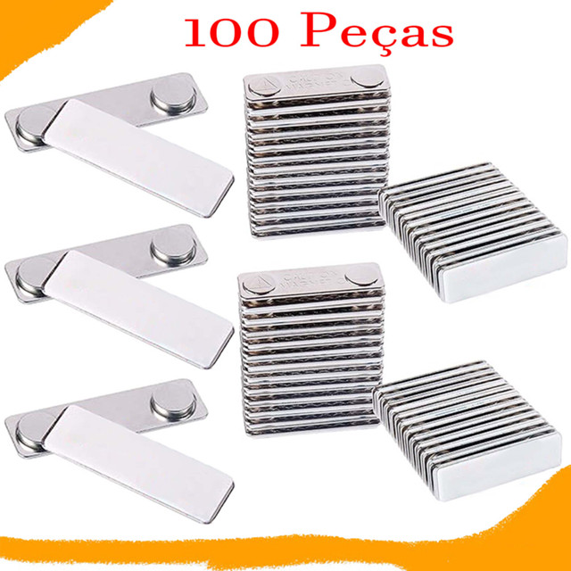 100 conjuntos de etiquetas magnéticas reutilizáveis, ímãs de crachá de nome, suporte adesivo forte suporte magnético