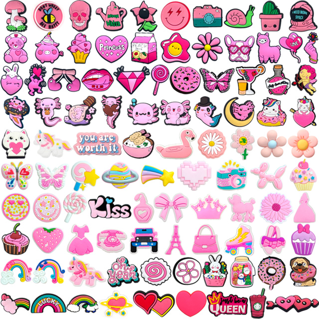 100 Estilos Venda Quente Rosa Meninas Tênis Encantos Sandálias Pingente Botão Original Sapato Tamanco Pinos Presentes Pa
