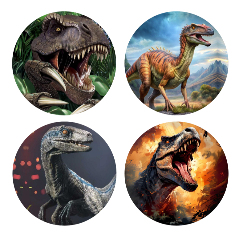 100 Etiquetas Adesivas DINOSSAURO JURASSIC WORLD PARK | Adesivo Redondo 4x4 | Vários Modelos