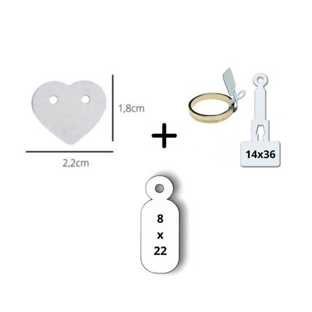 100 Etiquetas de Coração + 100 Etiquetas de Anel + 100 Etiquetas Preço Branco para Semi Jóias