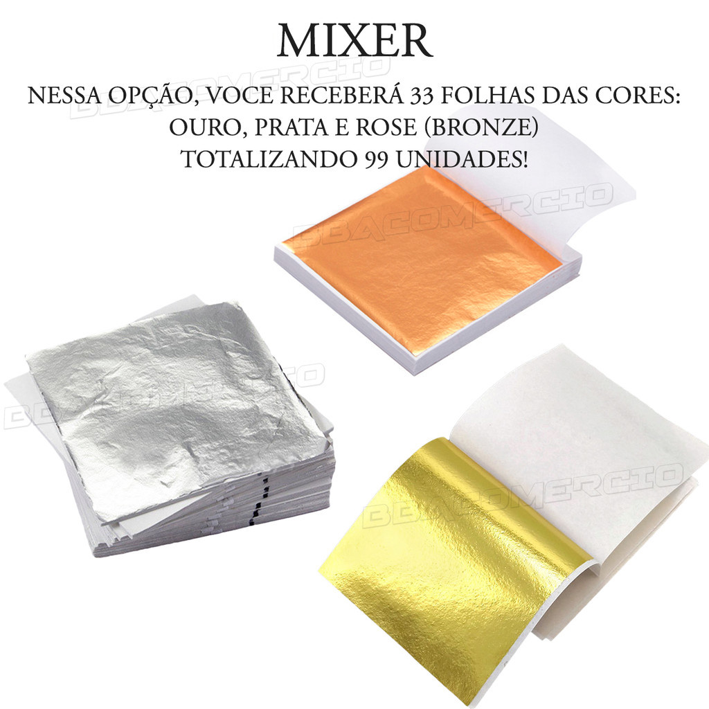 100 Folha Mix 33 Ouro 33 Prata 33 Rose Douramento Artesanato