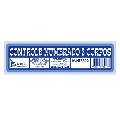 100 Folhas Bloco de Controle Numerado 2 Corpos