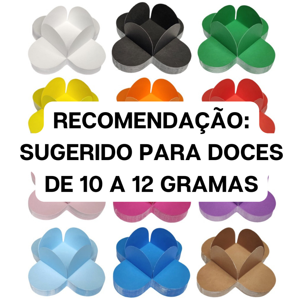 100 Forminhas 4 Pétalas Média Doces Finos Festas Aniversários Casamentos Batizados QUANTIDADE: - Quantidade: 100 unidades ( Escolher a cor diretamente no anúncio) - Cada pacote de forminha contém 100 unidades. TAMANHO (Base x Base x Altura): - Média: 3,3x3,3x2,5cm ou 33x33x25mm CORES: - Diversas cores disponíveis, basta selecionar a quantidade e a cor que deseja nas variações do anúncio. (Colorida em ambos os lados) A forminha para doce 4 pétalas é ideal para docinhos em geral, brigadeiros, beijinhos, bombons e tantas outras delícias. São fáceis de montar e perfeitas para decorar mesas de festas e comemorações! DETALHES DO PRODUTO - Excelente qualidade - Material Papel Offset 150g - Linha Profissional - Cores Vibrantes POSTAGEM/ENVIO - Todos os nossos produtos são a pronta entrega, enviamos dentro do prazo de 24 horas (úteis). GARANTIA - Os produtos são testados e aprovados pelo Inmetro, e entregues em todo território Nacional. DÚVIDAS - Estamos à disposição para qualquer dúvida, basta efetuar uma pergunta através do Chat, que retornaremos o mais breve possível. ✔Fotos Reais do Produto; ✔Agilidade na postagem (após confirmação pagamento); ✔Produtos Novos e a Pronta Entrega; ✔Produtos de Qualidade; ✔Atendimento Personalizado.