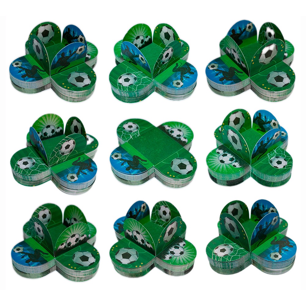 100 Forminhas Futebol 4 Pétalas Papel Cartão 200G Bola Jogo Taça Brigadeiros Festa Doces