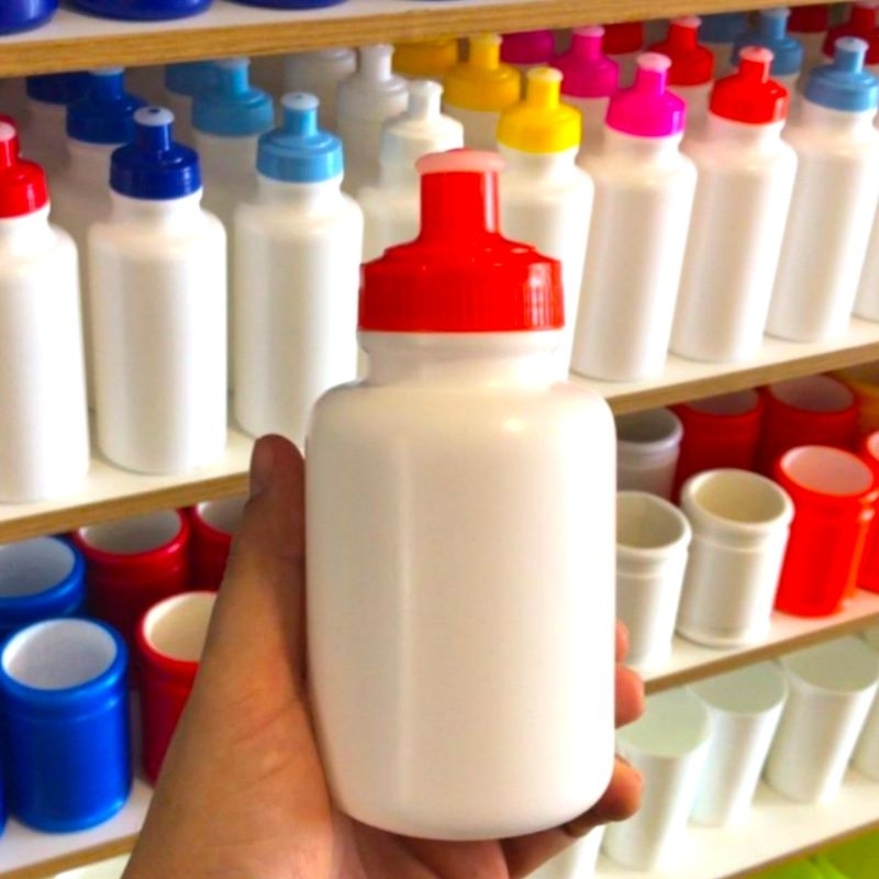 100 Garrafinhas Baby De Agua Squeeze 300ml plástico Branca tampa colorida Atacado
