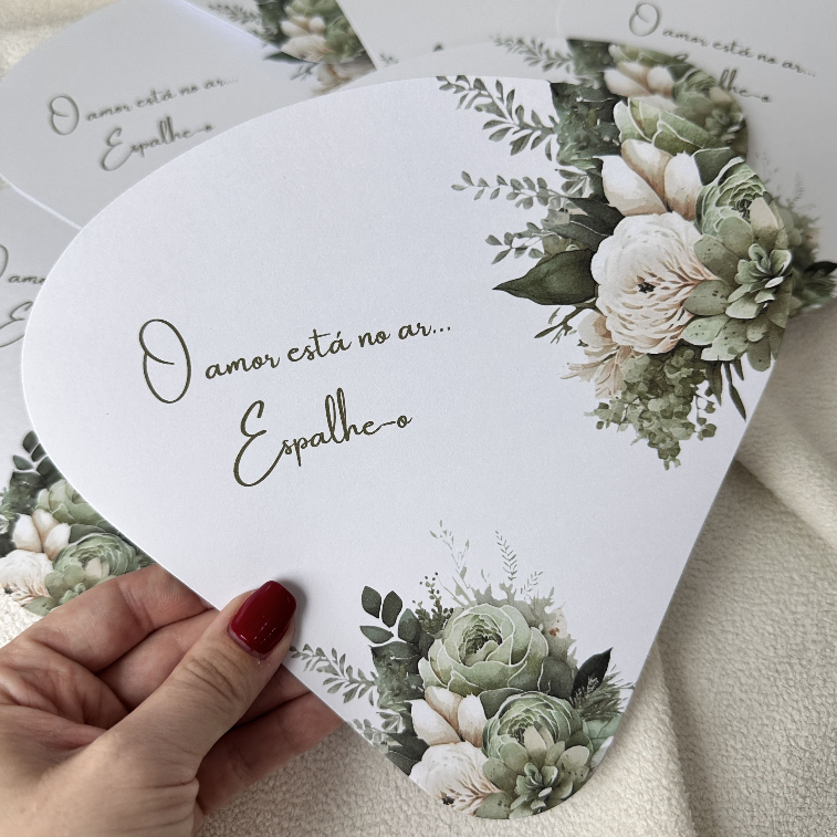 100 Leque Personalizado de Casamento Pronta Entrega para Convidados 🌿💍 O leque personalizado de casamento pronta entrega é o detalhe perfeito para tornar seu grande dia ainda mais especial — principalmente em casamentos ao ar livre. Além de elegante, ele é funcional e proporciona conforto aos convidados em cerimônias no campo, na praia ou em espaços abertos. Nosso leque para casamento é produzido em papel branco importado offset liso 250g, com impressão em alta qualidade, garantindo acabamento sofisticado e excelente durabilidade. Um item que une beleza, praticidade e organização, sendo ideal para noivas que precisam de uma solução rápida, sem abrir mão do charme. ✨ Pronta entrega é o nosso grande diferencial! Perfeito para quem tem pouco prazo e deseja receber tudo com agilidade. Especificações Técnicas – Leque para Casamento * Tamanho: 20x21 cm (tamanho ideal para manuseio confortável) * Material: Papel branco importado offset liso 250g * Impressão: Alta qualidade * Modelo: Arte padrão (não personalizável) * Disponibilidade: Pronta entrega Produto Artesanal – Observações Importantes Trabalhamos com produção artesanal, o que garante exclusividade e cuidado em cada detalhe. Por esse motivo, na impressão final, podem ocorrer leves variações na centralização da imagem em relação à arte apresentada. Além disso, os cortes e refiles podem apresentar pequenas variações, devido aos ajustes técnicos dos equipamentos utilizados no processo de produção. Pequenas variações de tonalidade podem ocorrer devido à iluminação da fotografia ou configuração de cada monitor. Cada leque é cuidadosamente revisado antes do envio, mantendo o padrão de qualidade do nosso ateliê. Políticas e Prazos 📦 Envio imediato após confirmação do pagamento, respeitando o prazo da transportadora conforme a região. ⚠️ Por se tratar de produto pronta entrega com arte padrão, não realizamos alterações no layout. 🔁 De acordo com o Art. 49 do Código de Defesa do Consumidor, o prazo para solicitação de cancelamento é de até 7 dias corridos após o recebimento, desde que o produto não tenha sido utilizado e esteja em perfeitas condições. 🚚 Confira atentamente o endereço de entrega no momento da compra. Em caso de erro cadastral, o reenvio será por conta do comprador. Garanta agora o seu leque para casamento ao ar livre e proporcione conforto e elegância aos seus convidados 🌿✨ Ideal para quem busca leque de casamento pronta entrega para convidados com envio rápido 💌