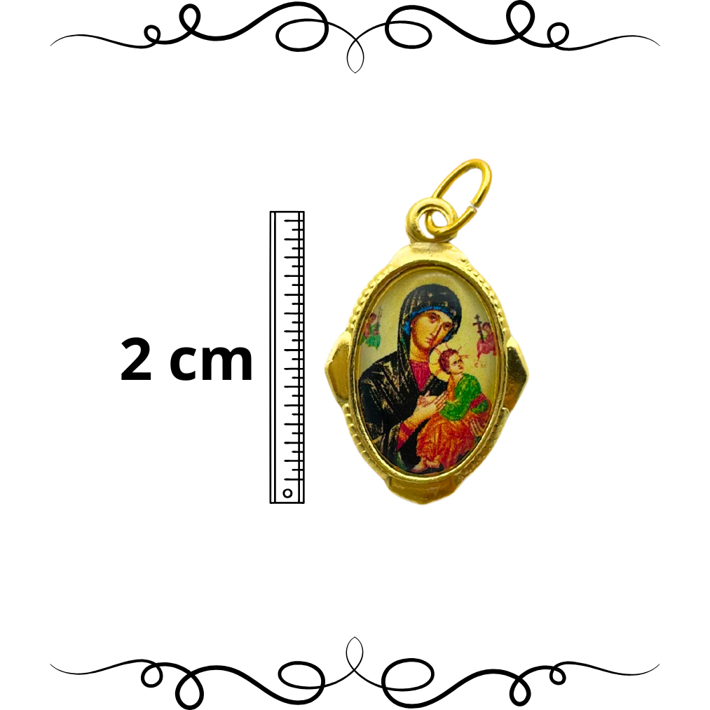 Traga proteção e fé para o seu dia a dia com as lindas medalhinhas de Nossa Senhora do Perpétuo Socorro! Perfeitas para presentear amigos e familiares ou para usar em momentos especiais. Características do Produto: - Design Delicado: Cada medalhinha apresenta um design detalhado e encantador, ideal para quem busca um símbolo de fé e devoção. - Material de Qualidade: Feitas de alumínio com imagem resinada, as medalhinhas são resistentes e mantêm seu brilho por muito mais tempo. - Versatilidade: Perfeitas para serem usadas como pingentes, lembrancinhas em eventos religiosos ou até mesmo como um toque especial em artesanato. - Todas as medalhinhas possuem argolinha. - Imagem nítida e centralizada. - Feitas artesanalmente com muito capricho e carinho. Por que escolher nossas medalhinhas? Além de serem um lindo acessório, elas são uma forma de expressar sua fé e carinho. Com um preço acessível, você pode ter a certeza de que está adquirindo um produto de qualidade que tocará o coração de quem receber. Não perca essa oportunidade! Adquira já o seu conjunto de medalhinhas e leve um pouco mais de amor e proteção para a sua vida e a de quem você ama! 100% artesanal Produzimos medalhas de outros santos. Consulte-nos. Conheça nossos outros produtos. Largura: 1.50 cm Comprimento: 2.00 cm