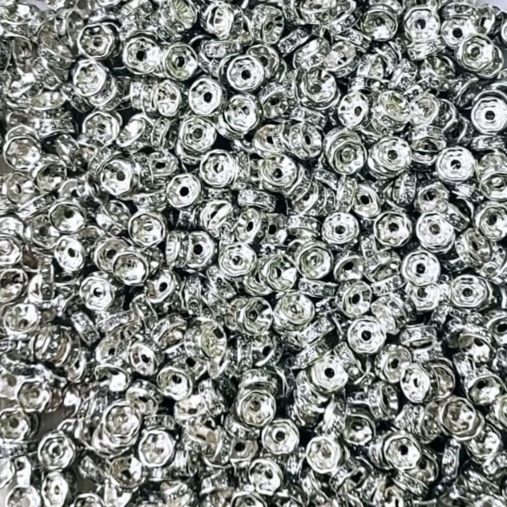 100 ou 500 un Rondelle com Strass Entremeio 6 ou 8mm Prata ou Dourado